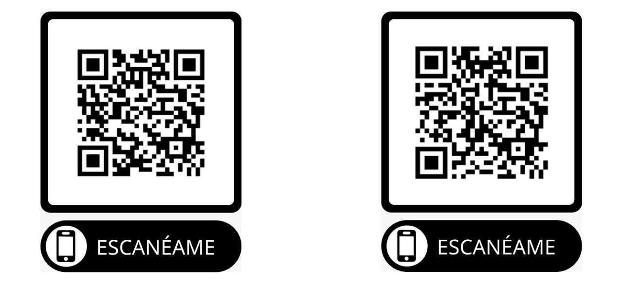 Escanea los siguientes códigos para ver el ejemplo de cada paquete. ¡Solo inicia la cámara de tu smartphone y abre el link al que te dirige el código!